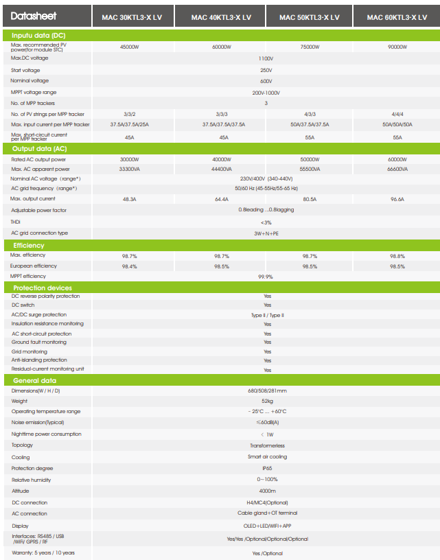 Growatt MAC 60KTL3-X LVModel Number