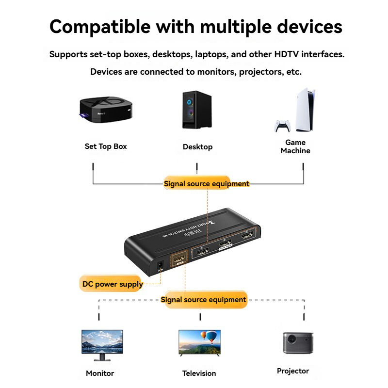 Commutateur HDTV Mini 4K 3x1 à 3 Ports, Sélecteur Vidéo Facile à Utiliser, Répartiteurs et Convertisseurs Métalliques en Gros