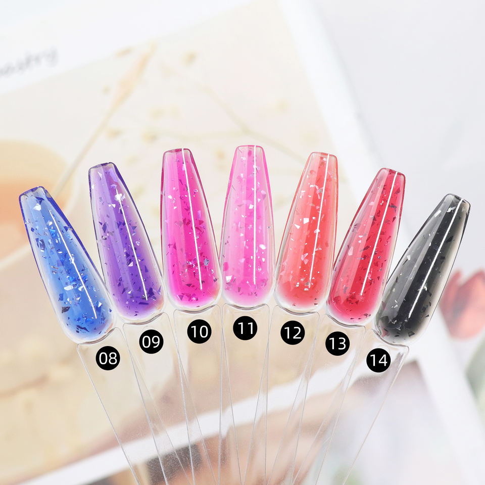 Gel de construction transparent sans HEMA ni TPO pour extension d'ongles, gel coloré effet bonbon, gel pailleté personnalisé avec logo en pot – Vente en gros