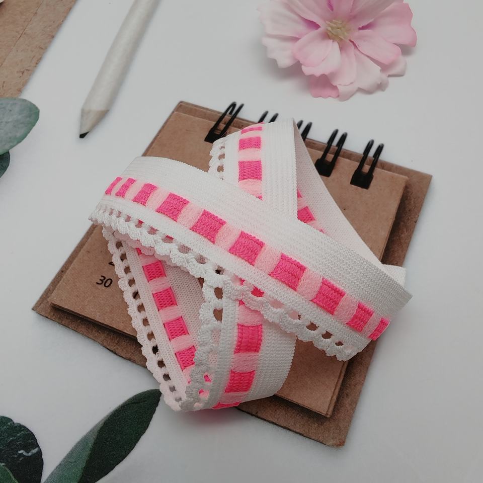 Vente en gros HH4K Largeur personnalisée Sergé Sangle élastique mince Spandex/Nylon Bande de reliure Noir Blanc Rose Motif Sous-vêtements Vêtement