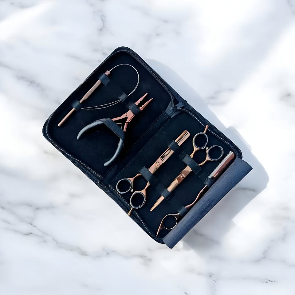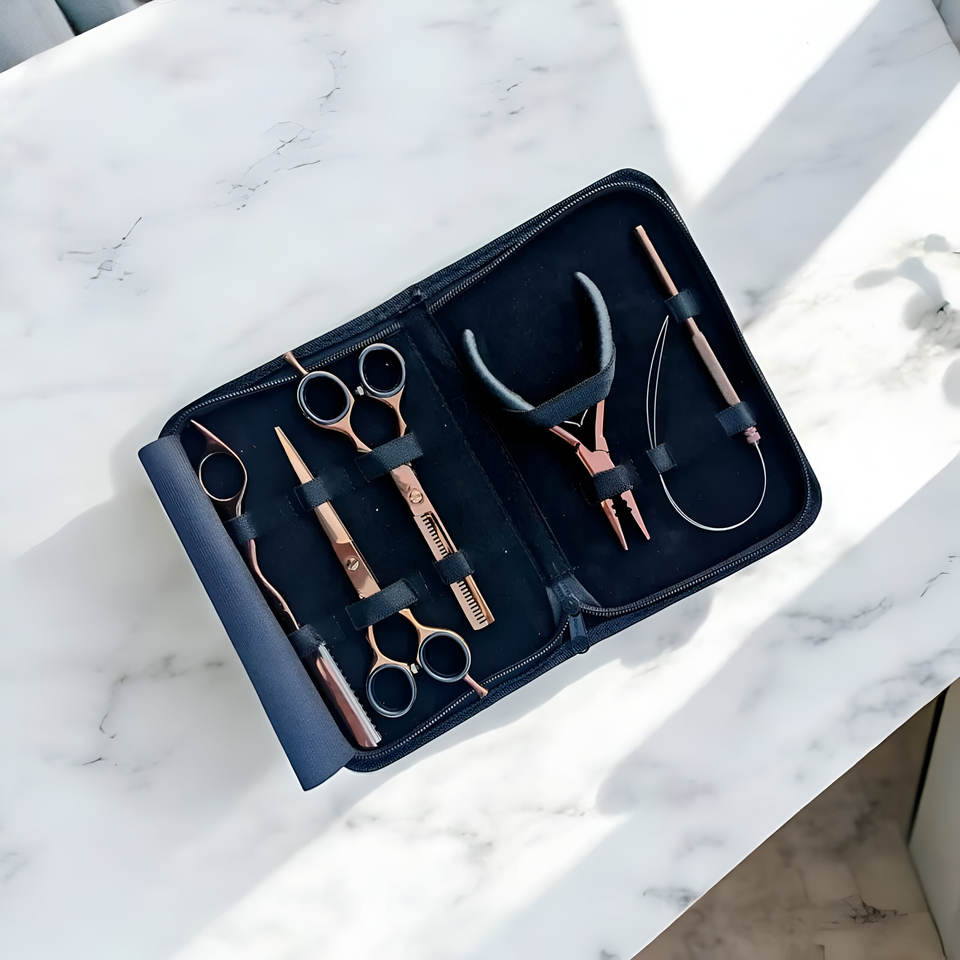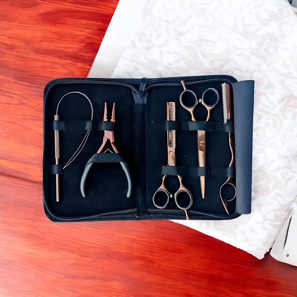 Vente en gros d'ensemble d'outils d'extension de cheveux-Pinces d'extension de cheveux et ciseaux avec kit d'outils de retrait