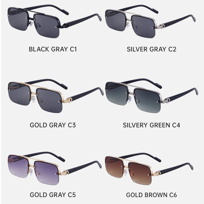 Vente en gros de lunettes de soleil à la mode demi-monture rétro polarisées en métal transfrontalier pour hommes pour la conduite