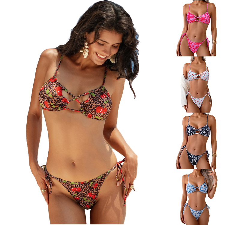 Vente en gros HanYun Bikini deux pièces à imprimé floral pour femmes, maillot de bain sexy à coupe haute avec bas taille haute