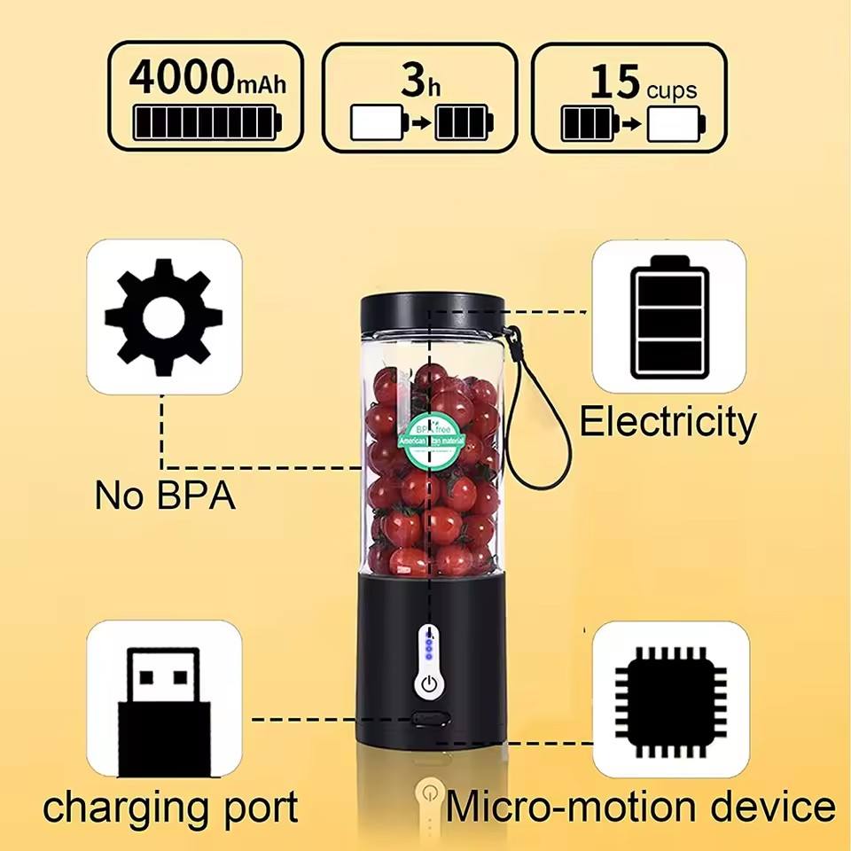 Mixeur Plongeant Portable pour Smoothies et Shakes, Mini Presse-Agrumes de Voyage en Plastique, Rechargeable USB 4000 mAh sur Batterie
