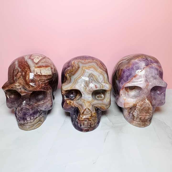 Nom du produit:Agate du Mexique avec crânes d'améthyste