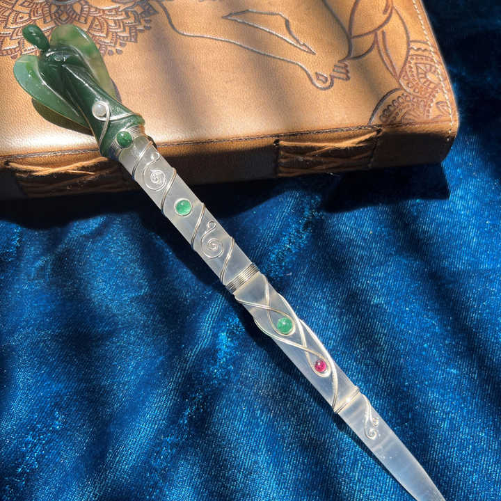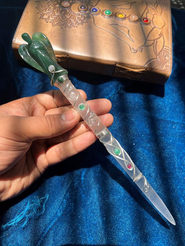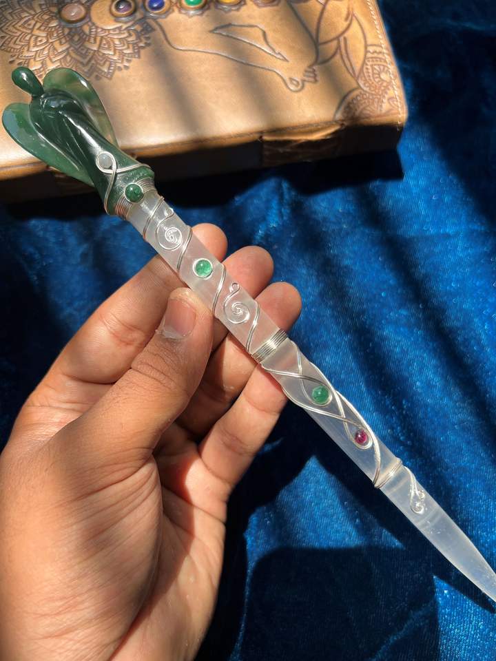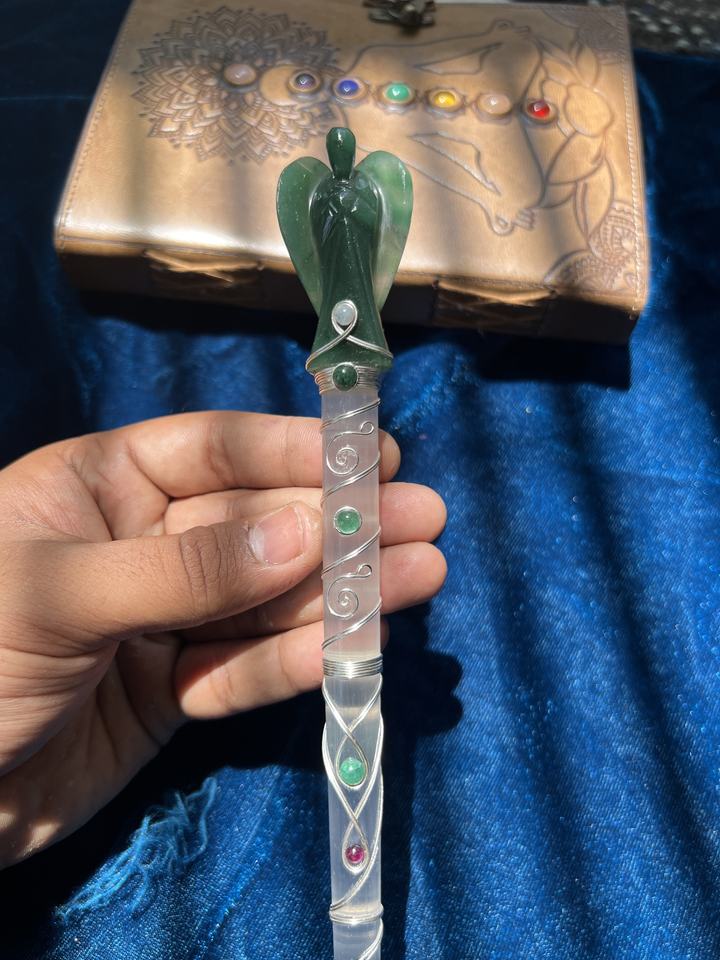 Product name:Green Aventurine Angel Figurine with Selenite Crystal Wand