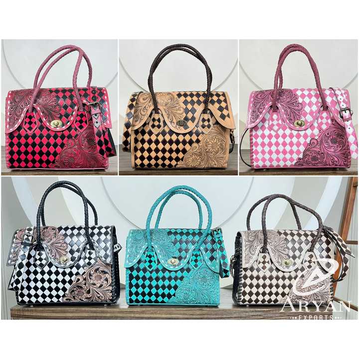 Product Name:Hand-Tooled Checkered Leather Handbag