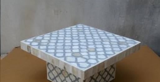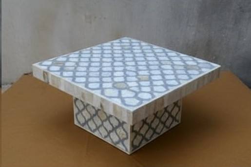 Vente en gros de support à gâteau carré de taille personnalisée en incrustation d'os écologique fabriqué à la main Table d'appoint au design floral artistique pour le luxe