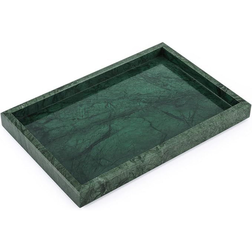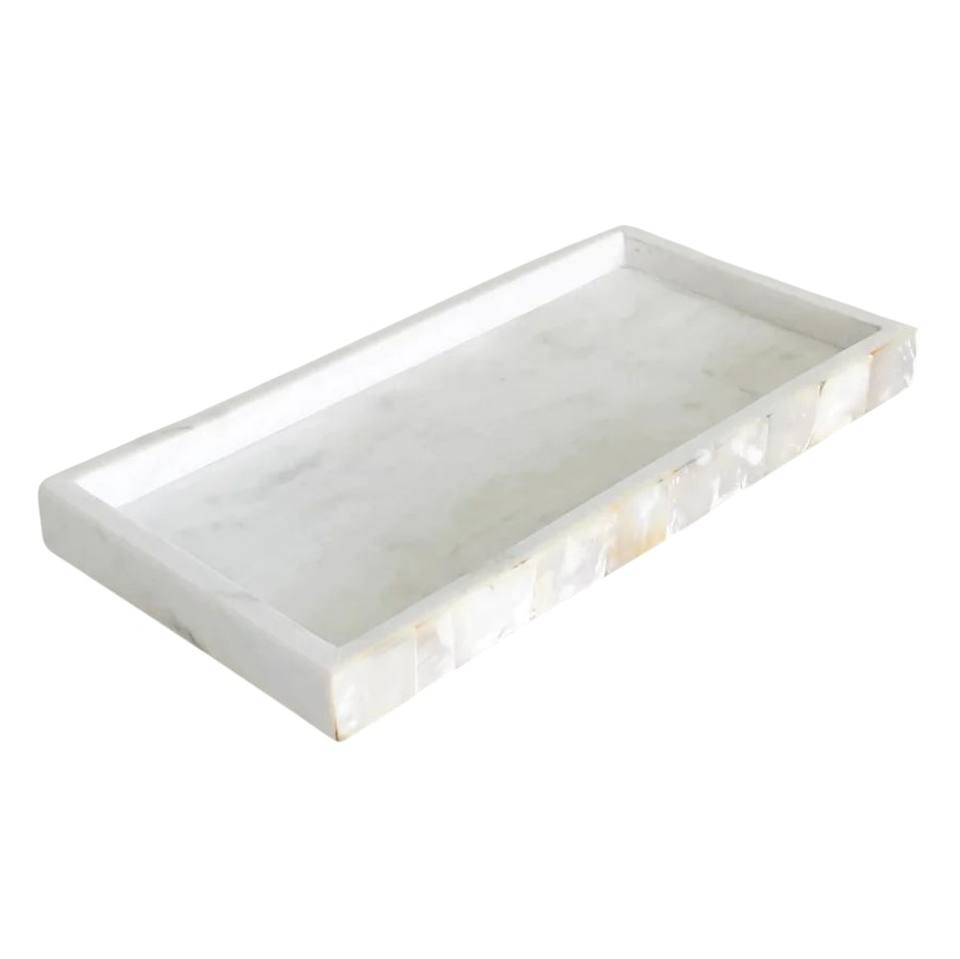 Plateau rectangulaire en marbre blanc naturel artisanal pour la décoration de la maison, plateau de service moderne et luxueux, organiseur