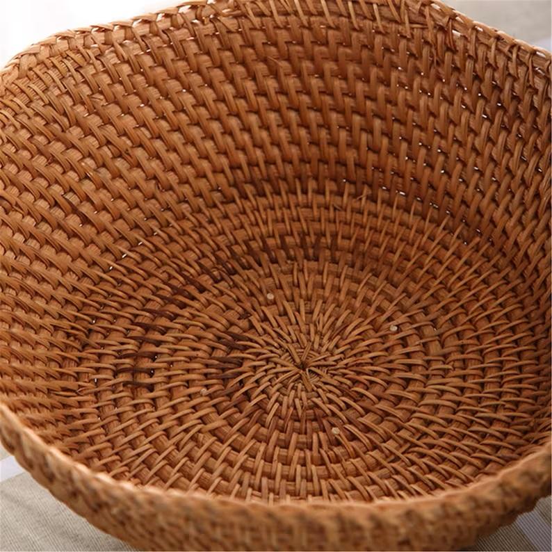 Vente en gros de corbeille à fruits en rotin tissé artisanal plateau à pain en bambou pour le rangement de la cuisine