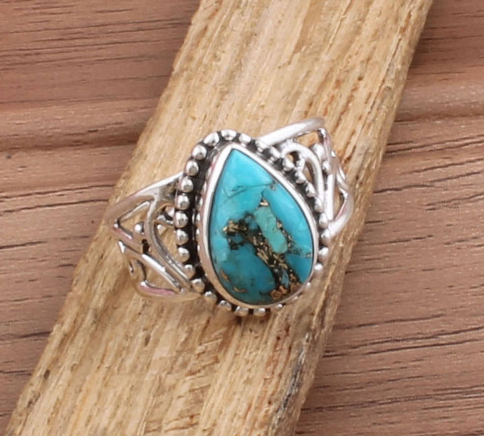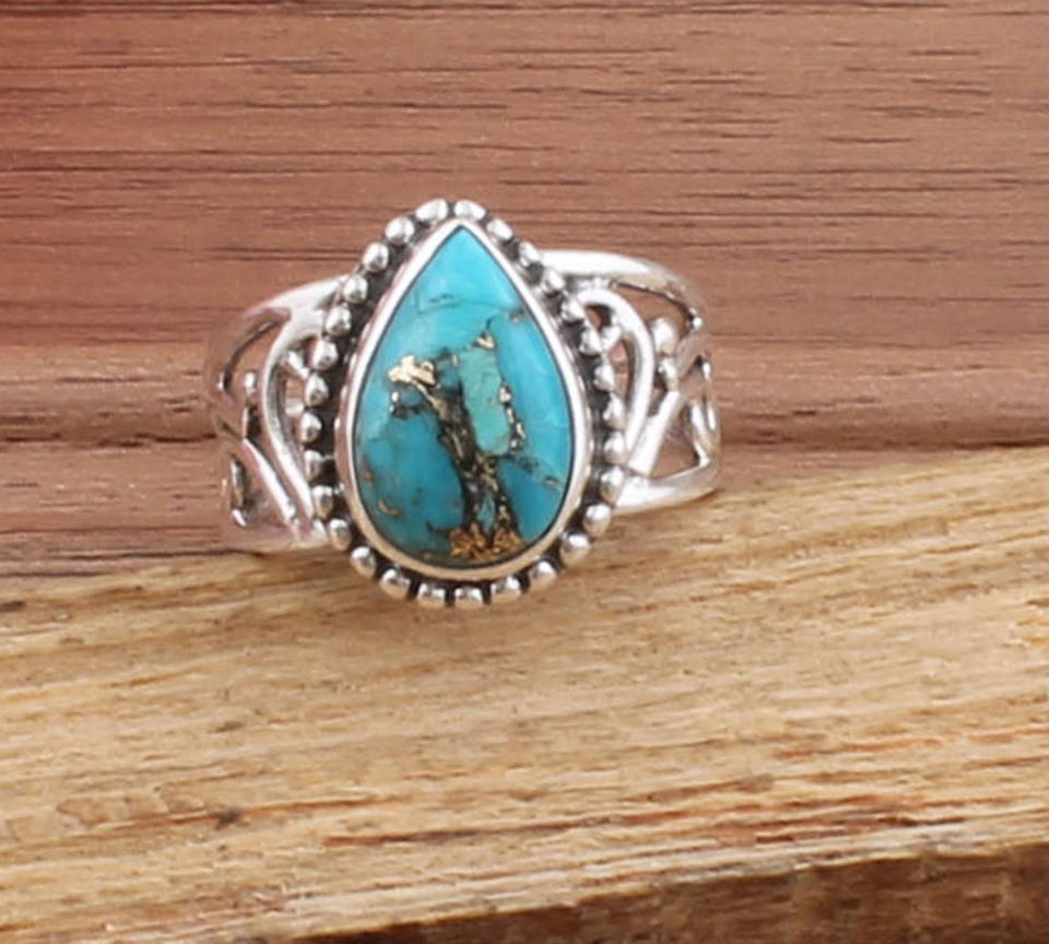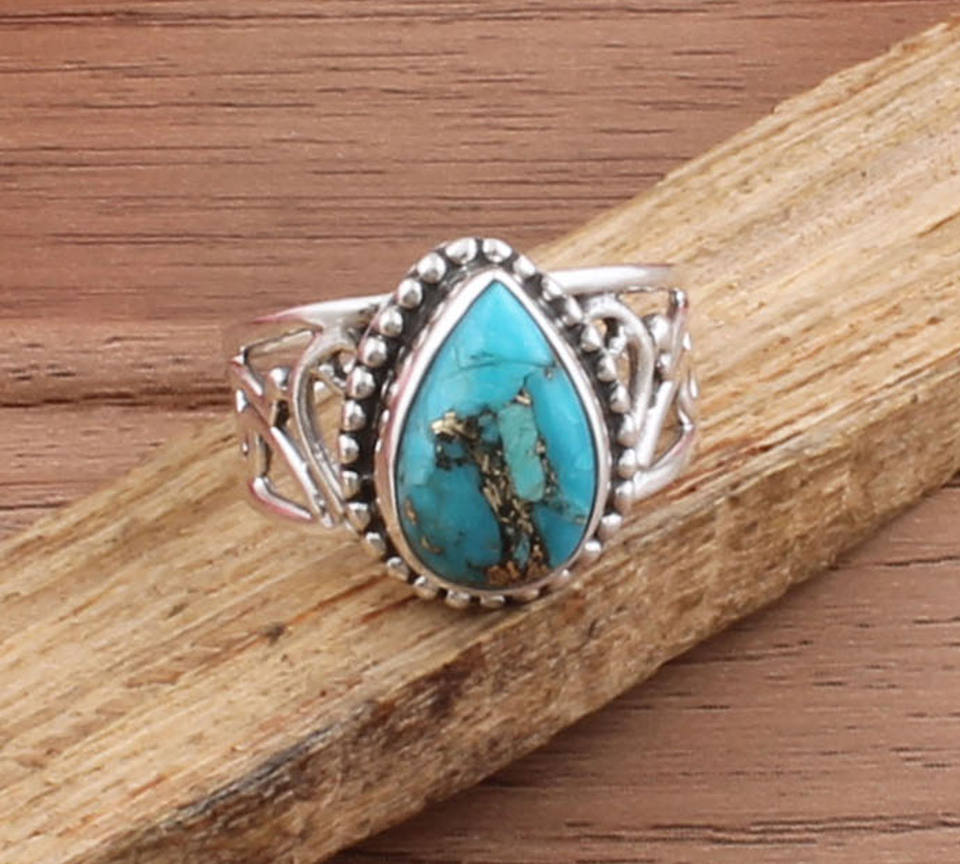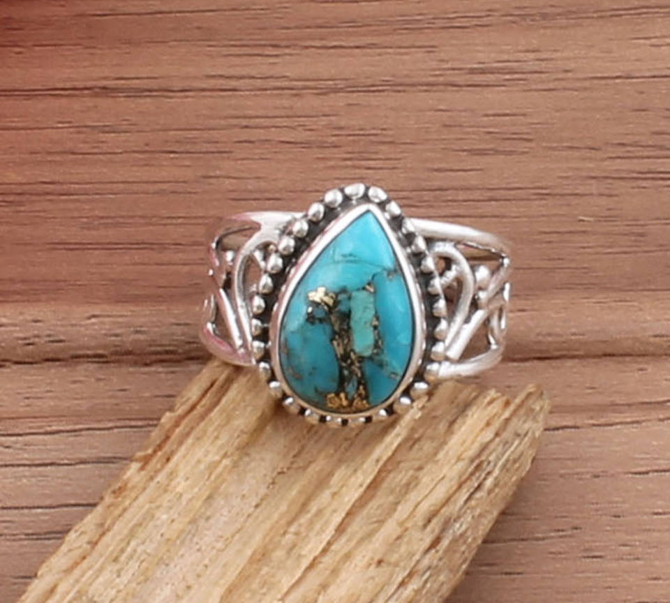 Bague pour femme en argent sterling 925, turquoise bleue faite à la main, taille ovale, sertie clos, style bohème, bijou de mariage, vente en gros