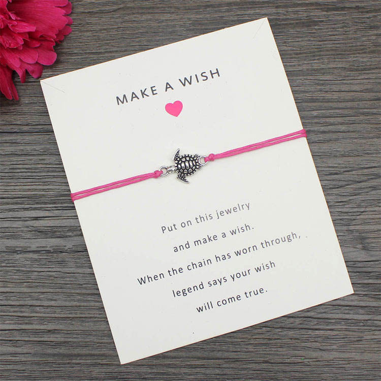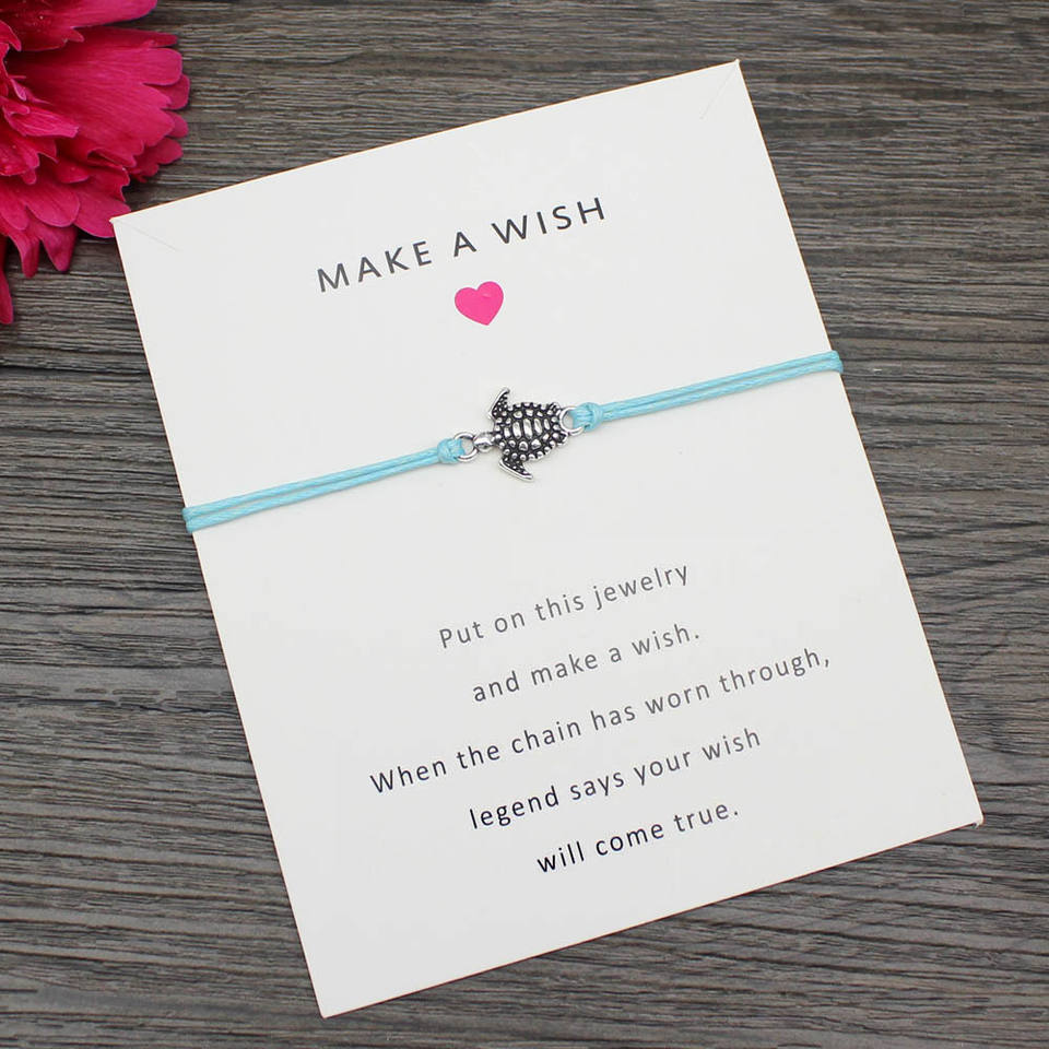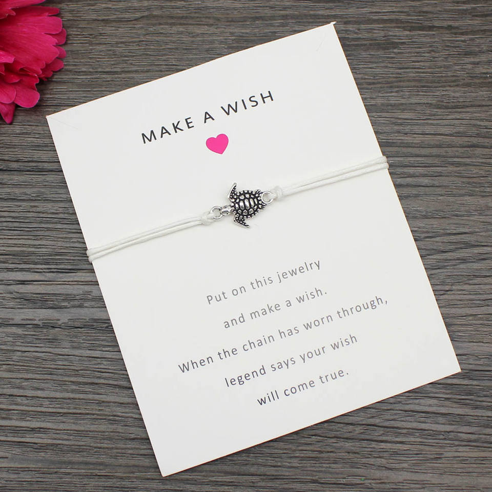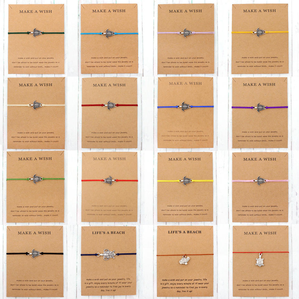 Bracelets d'amitié en cire colorée tressée à la main en gros Bracelets femmes hommes carte de souhaits série marine Bracelet tortue de mer en argent