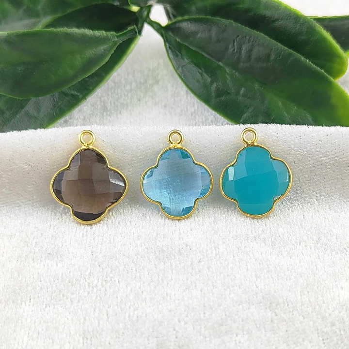 Product Name:Clover Briolette Gemstone 925 Sterling Silver Bezel Setting Pendant