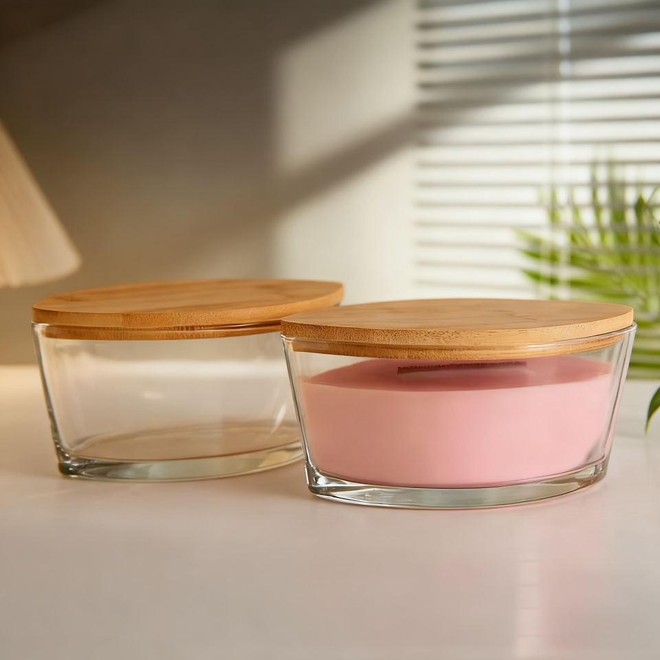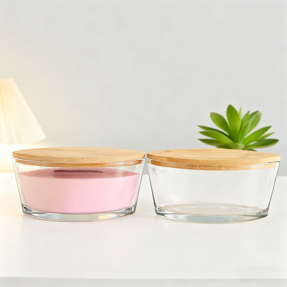 Bougies parfumées artisanales en verre sur mesure, violettes, luxueuses, 450 ml, forme pilier, mèche en bois, écologiques, aromathérapie
