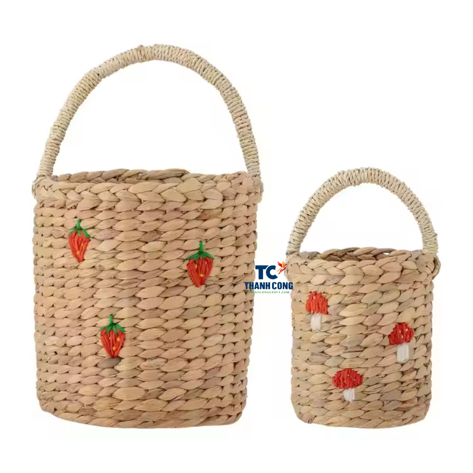 Product name:Water Hyacinth Embroidered Laundry Basket