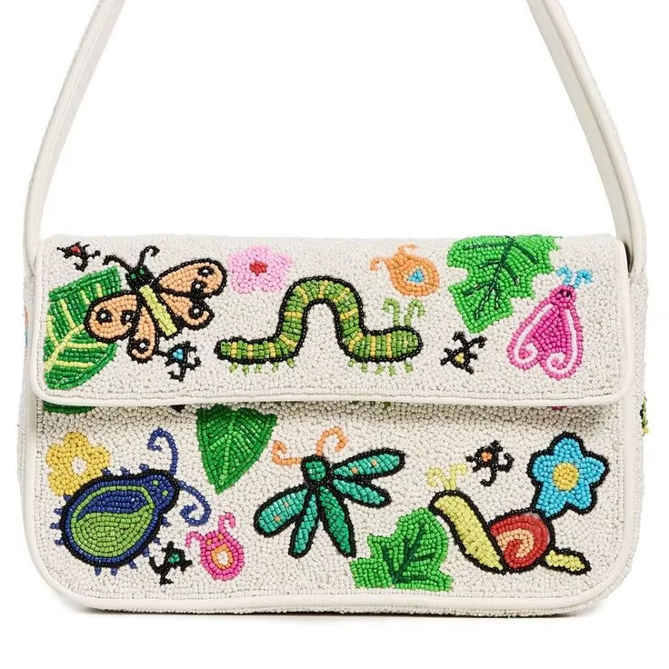 Sac à bandoulière artisanal en perles de verre faites à la main, motif papillon, pour soirées, design fantaisie, sacs à bandoulière de créateur