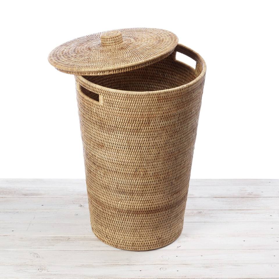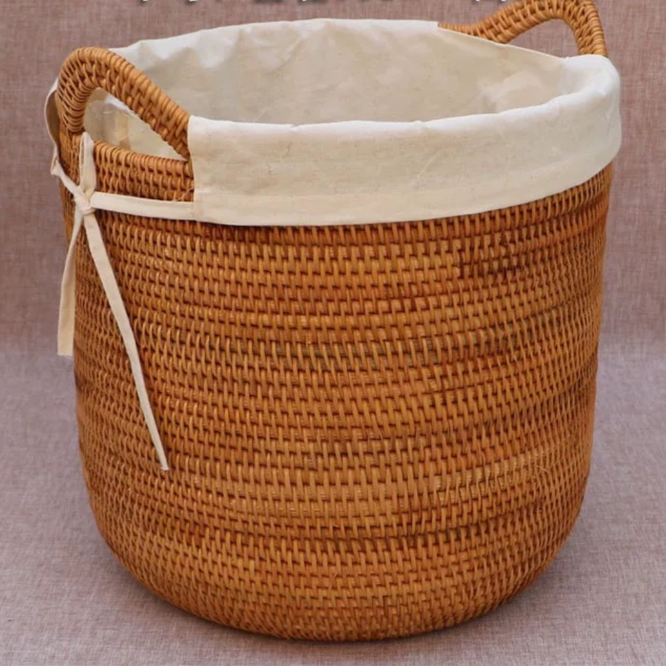 Grand panier rond en rotin et osier avec tressage robuste pour le rangement et la décoration intérieure, organisateur décoratif pour la chambre et la buanderie