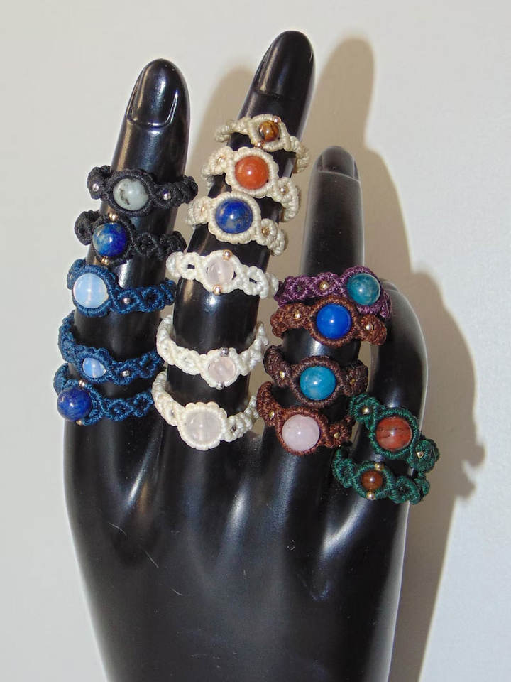 Lot de bagues en macramé faites à la main - Bijoux bohèmes de fiançailles en pierres précieuses naturelles certifiées IGI - Fournisseur en gros Inde | Mangalmay