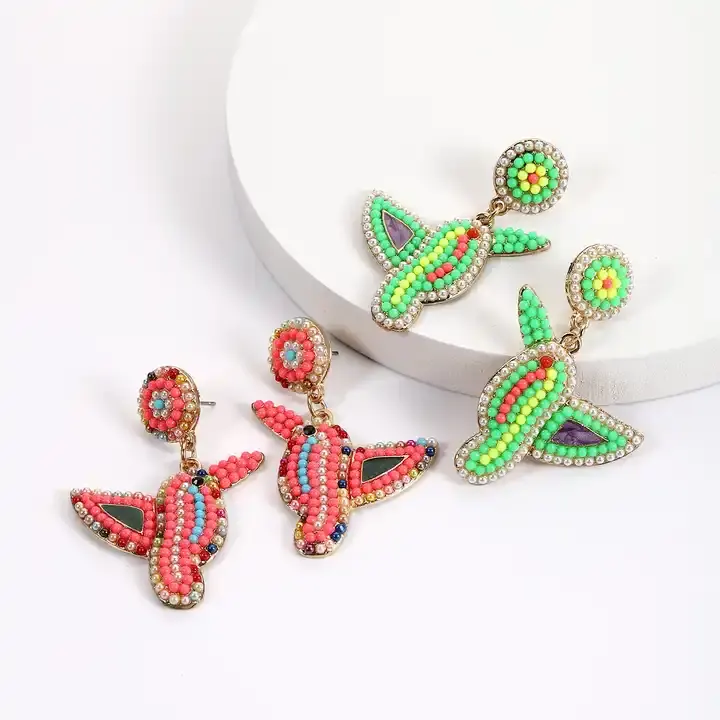 Vente en gros de boucles d'oreilles au crochet en perles de rocaille multicolores faites à la main bijoux artificiels à la mode pour femmes