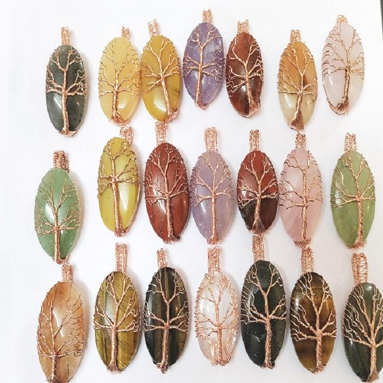 Pendentif en pierre de cristal multi-arbre de vie fait à la main en gros Pierre précieuse semi-précieuse naturelle artisanale avec fil de cuivre enroulé