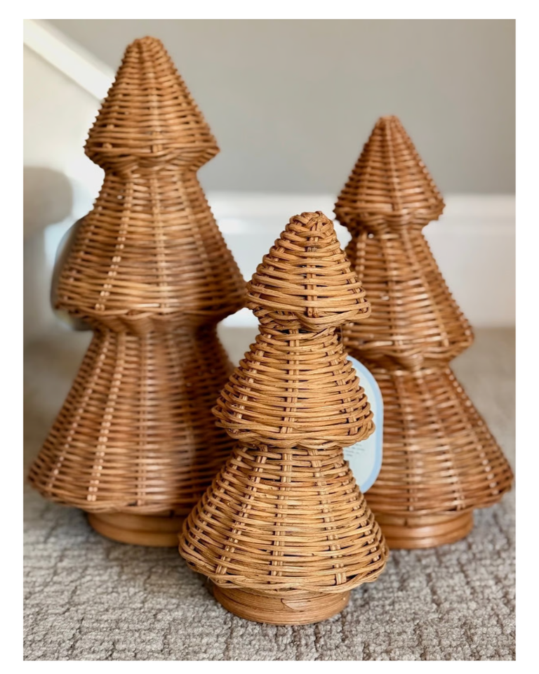 Vente en gros de décoration d'arbre de Noël en rotin fait à la main Décoration de vacances tissée rustique pour ornement de Noël de ferme Boho naturel de table