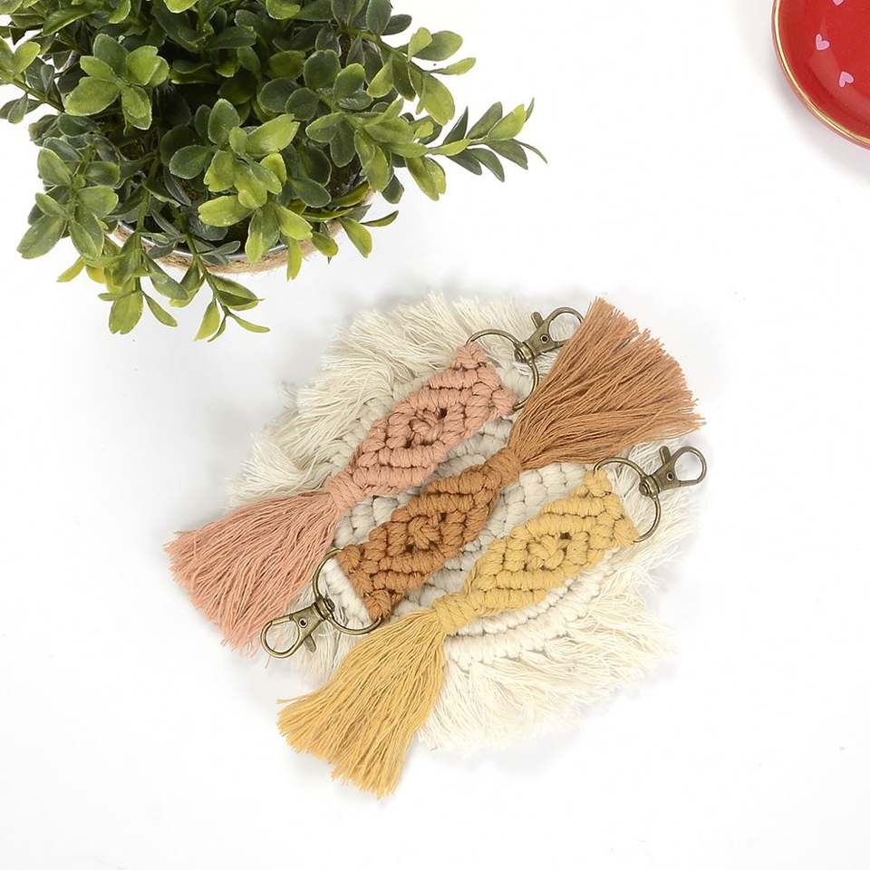 Vente en gros de porte-clés en macramé bohème en coton tissé à la main ACASA ARTO avec impression personnalisée