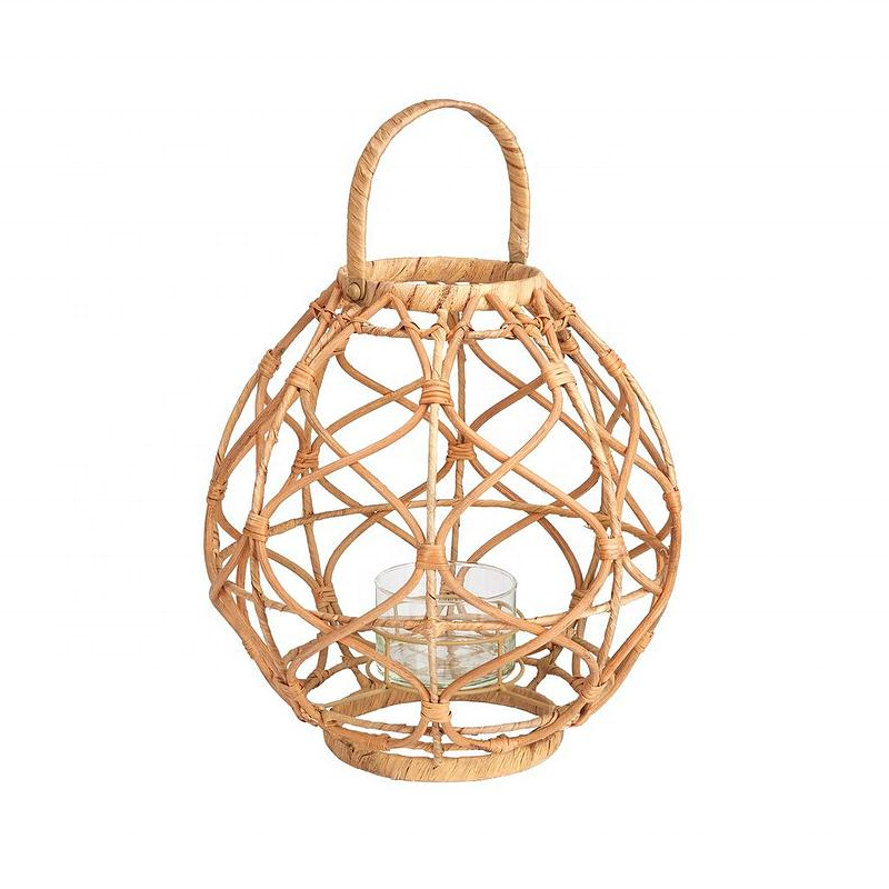 Wholesale Handmade Woven Wicker Cane Wiwin Jute Lantern Wooden Restaurant Hanging Candle for Christmas Home Decorative