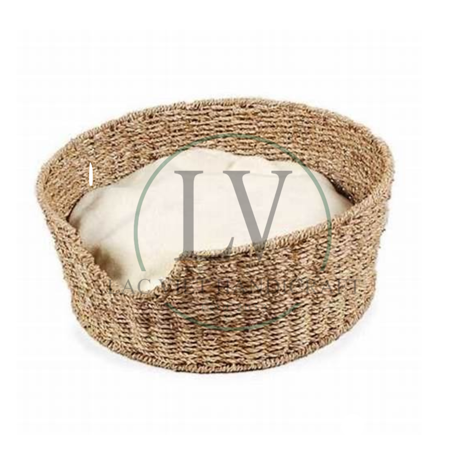 Wholesale Handwoven Seagrass Pet Beds for Dogs Cats Pet Products Bed with Soft Cushion Wholesale From Vietnam