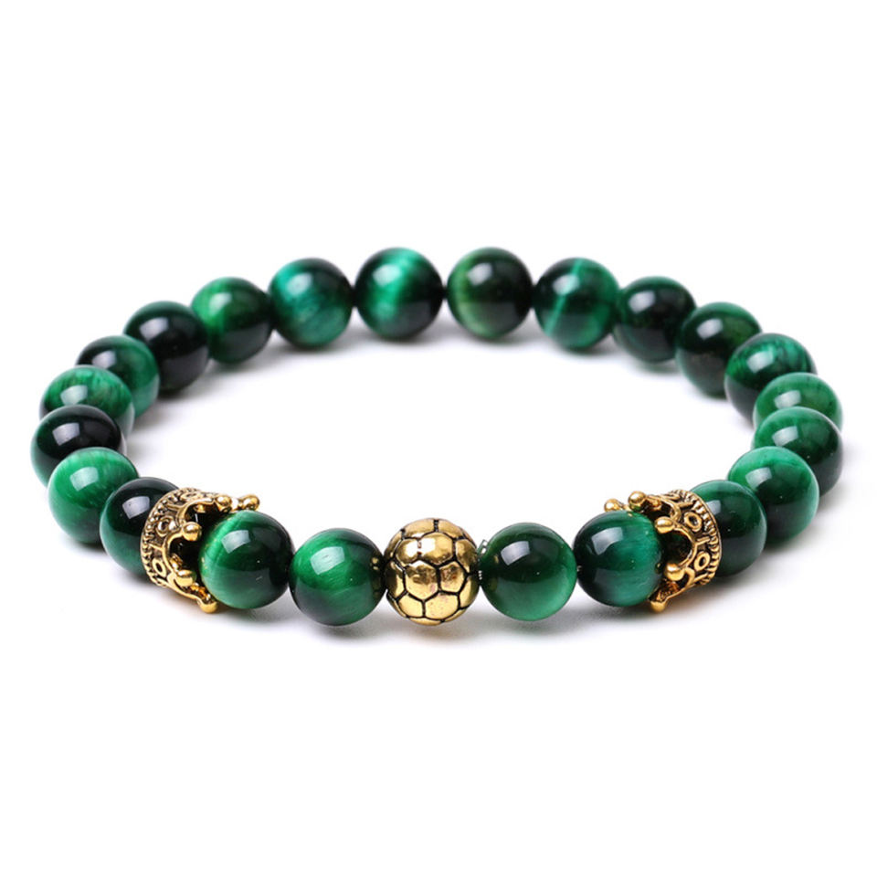 Wholesale Healing Jewelry 18k Gold Plated Football Crown Charm Natural Volcano lava Stone Yoga Bead Bracelet for Men