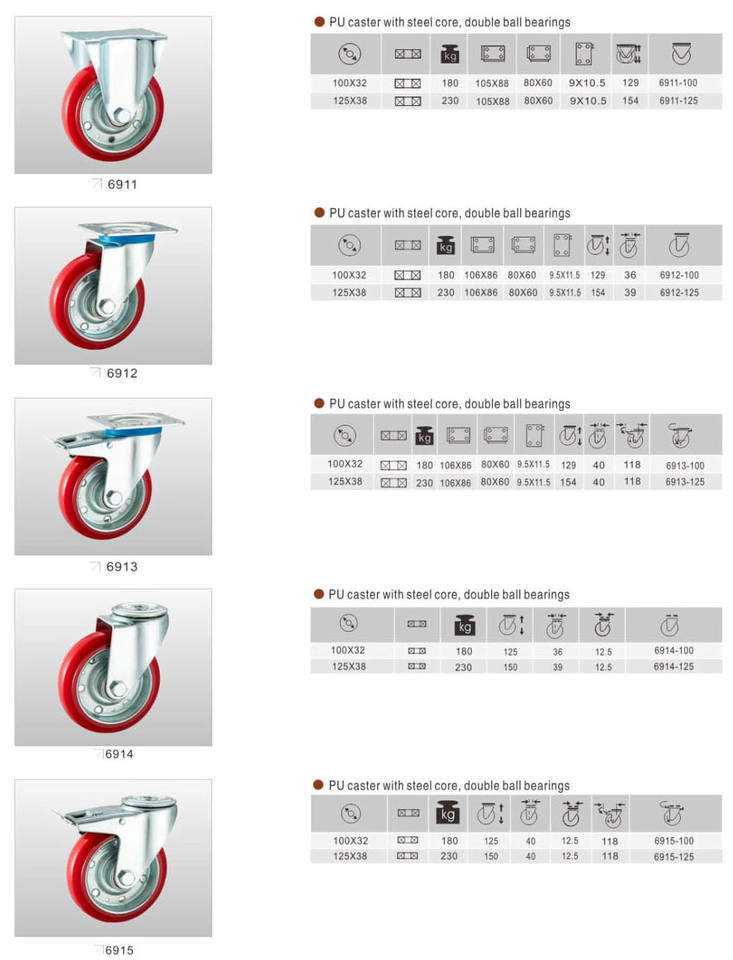 model number:PU caster with steel core double ball bearings