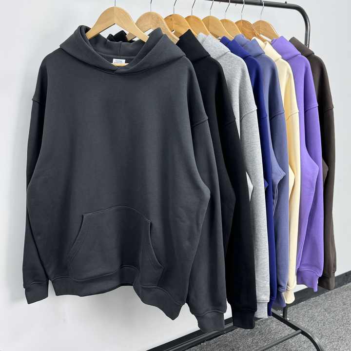 Vente en gros Vêtements de rue surdimensionnés 500gsm, sweat-shirt uni avec impression bouffante en coton vintage pour hommes, sweat à capuche avec strass