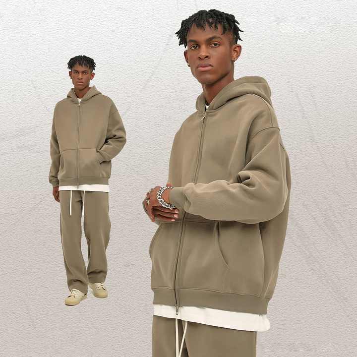 Wholesale Heavyweight Cotton Double Zip Up Hoodies High Quality Men's Hoodie Custom Logo Oversize Fit Zipper Hoodies