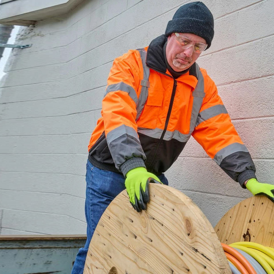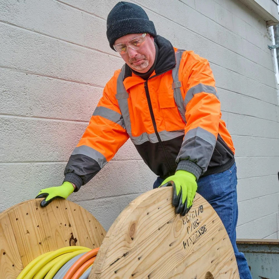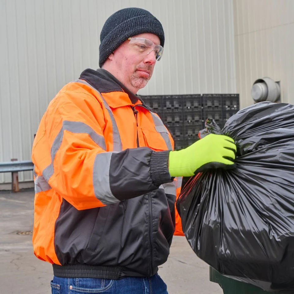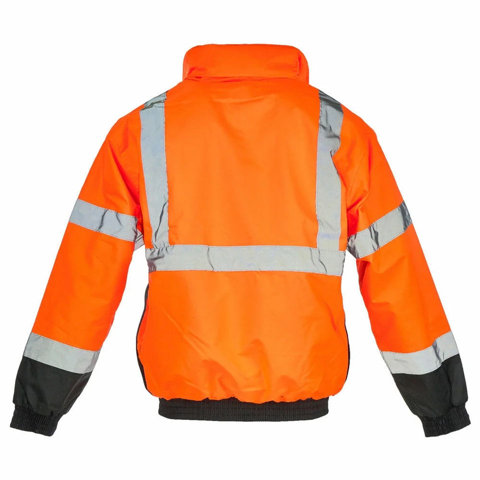 Veste de travail d'hiver haute visibilité en gros, orange et noir, 100 % polyester, pour homme, à capuche, avec poches avant, respirante et coupe-vent