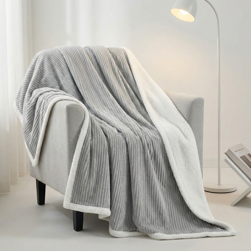 Nom du produit:Couverture en flanelle côtelée jacquard 3D rayée, doublée en velours Shu.