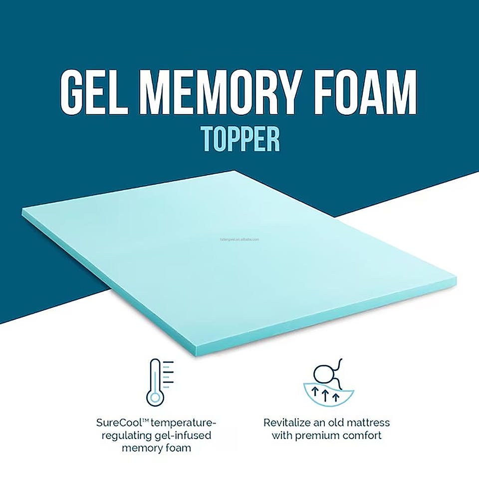Surmatelas en mousse à mémoire de forme à gel rafraîchissant haute densité, respirant et doux, pour hôtels et usage domestique (vente en gros)