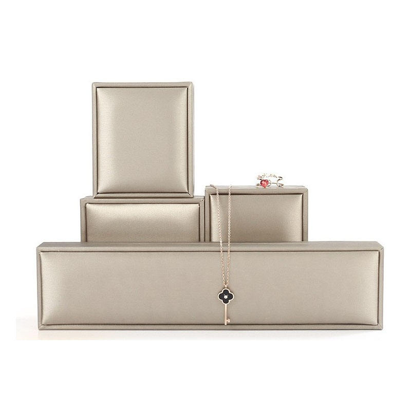 Boîte à bijoux rectangulaire de luxe en cuir PU brossé avec logo personnalisé haut de gamme pour ensemble collier et bague en velours – Saint-Valentin