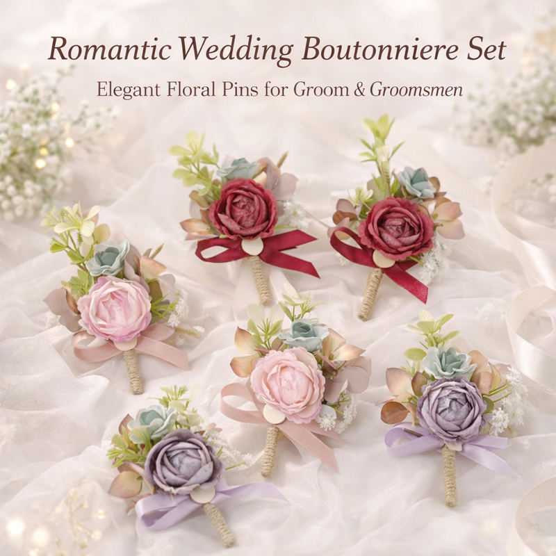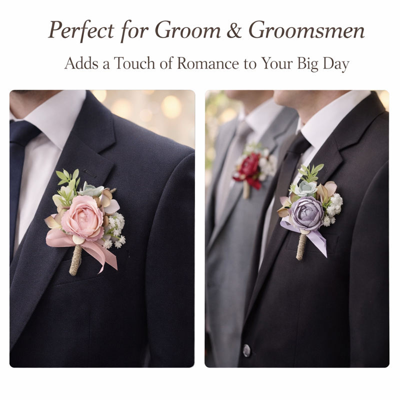 Lot de 6 Boutonnières Haut de Gamme pour Mariage, Fleurs Artificielles en Rose Simulée pour le Marié et les Garçons d'Honneur