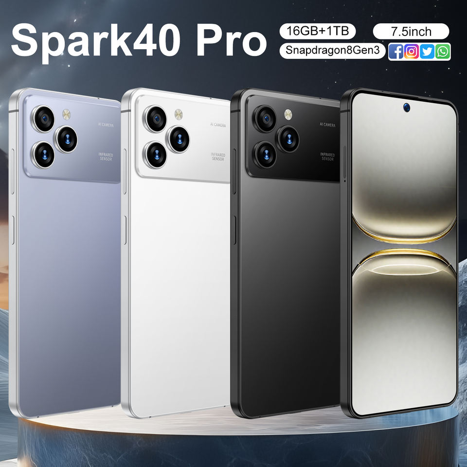 Smartphone Android 15 Spark40 Pro haute performance en gros, écran HD de 7,5 pouces, 12 Go + 512 Go de stockage important, double carte SIM en veille