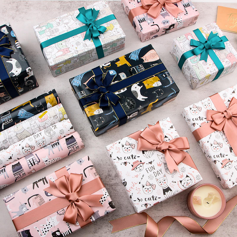 Vente en gros de rouleaux de mouchoirs d'anniversaire de haute qualité série animale emballage rouleau de papier d'emballage artisanat supérieur