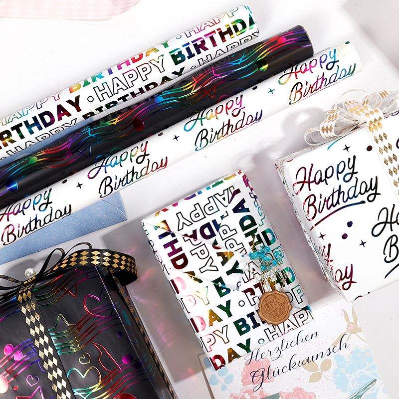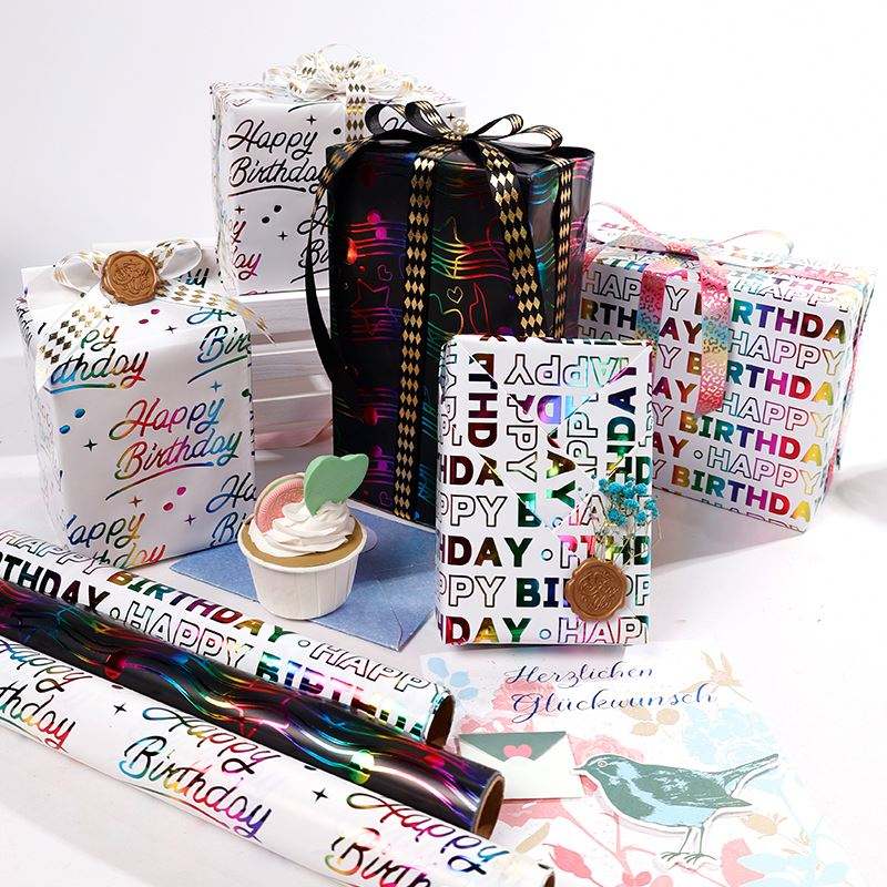Papier d'emballage d'anniversaire jetable de haute qualité en gros, rouleaux de papier artisanal, artisanat supérieur, couleur or, emballage
