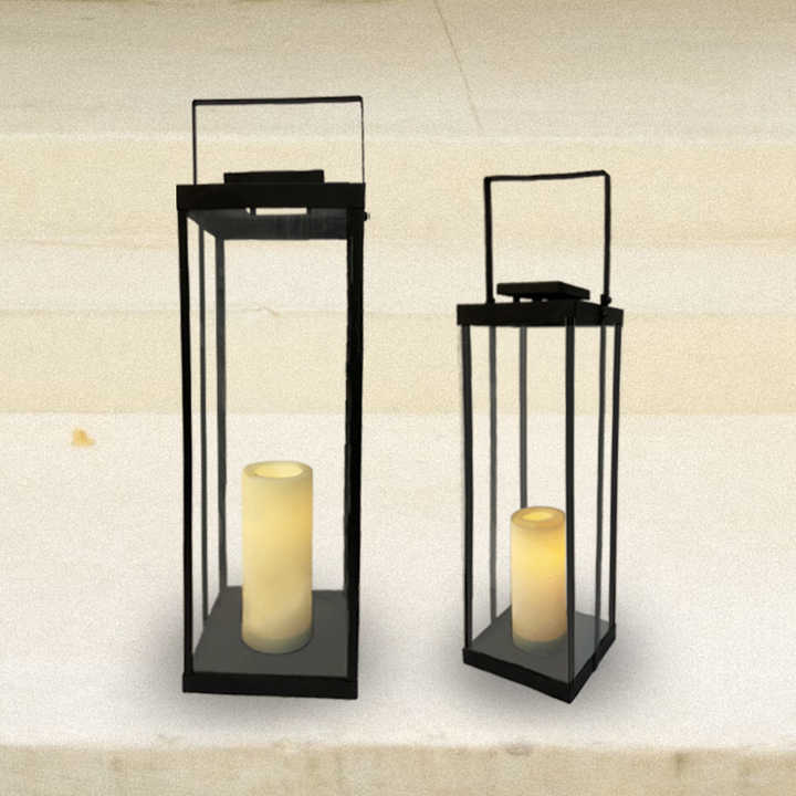 Wholesale High Quality Black Glass Metal Outdoor Solar Lantern LED Light Battery Solar Panel for Home Garden Decoration Garden