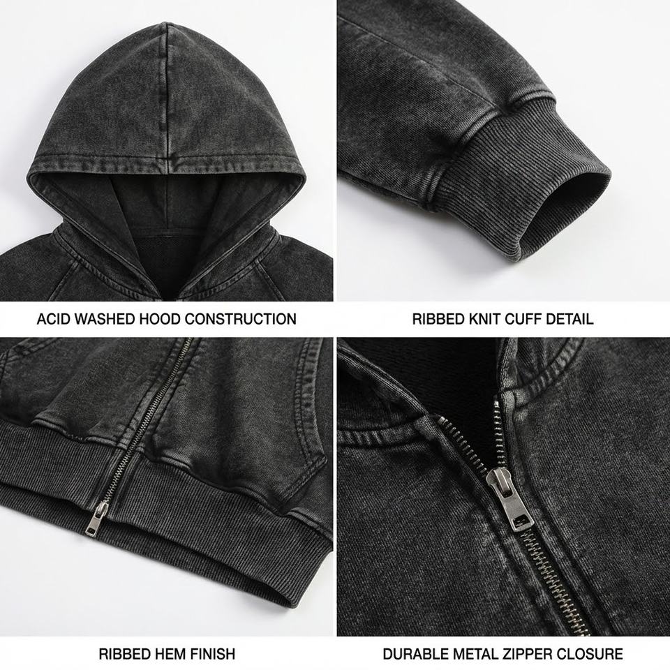 Vente en gros de sweats à capuche zippés en coton lourd uni de haute qualité, manches raglan, effet délavé, fournisseur de sweats à capuche pour hommes