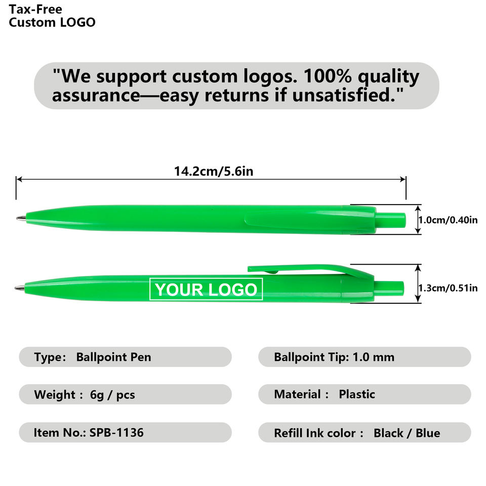 Stylo bille en plastique de haute qualité, personnalisable avec logo, encre bleue/noire 1,0 mm, idéal pour le bureau, l'école et la promotion (vente en gros)