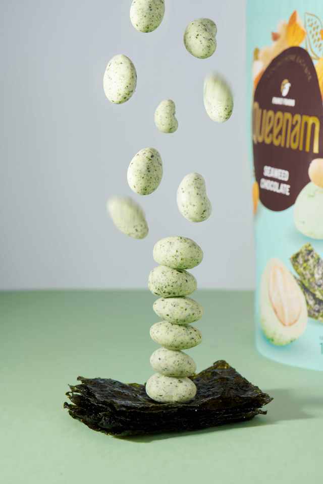 Contenu :Algues enrobées de chocolat aux amandes et noix de cajou
