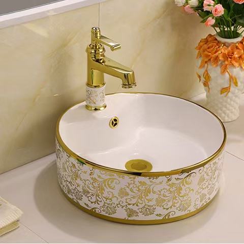 Product name:Wholesale high quality Countertop Sinks art gold white wash basin