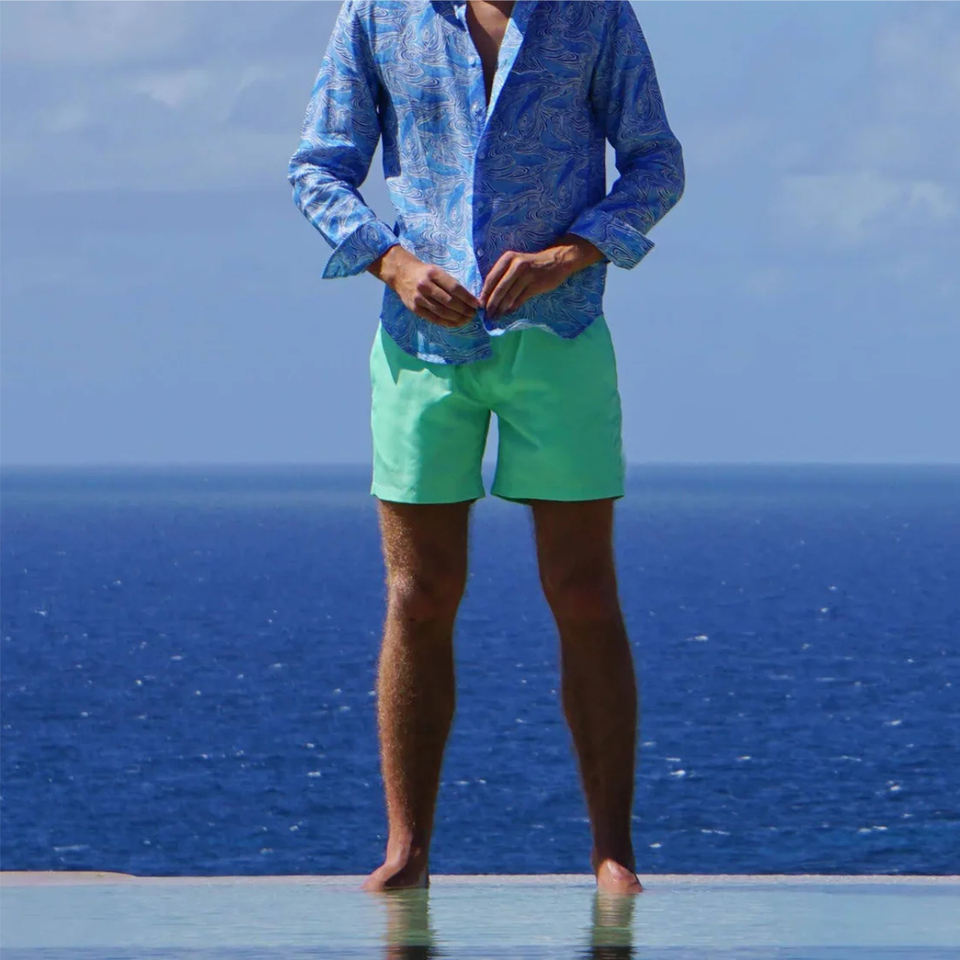 Keywords:Hawaiian print swim shorts
