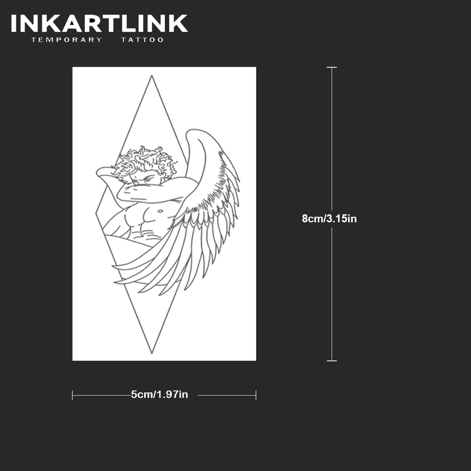 Autocollants de tatouage semi-permanents en gros de haute qualité, personnalisés, géométriques, ange déchu, imperméables, jus de fruits naturels, approvisionnement en vrac