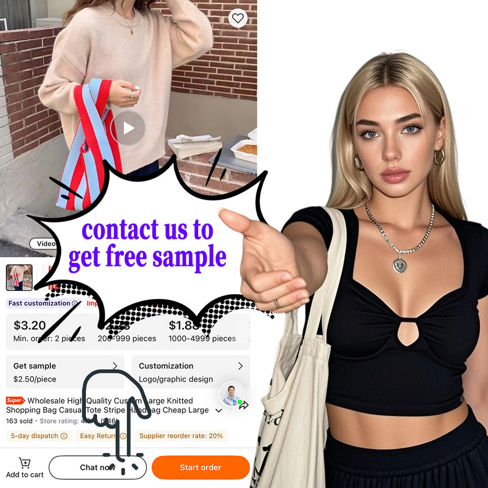 Vente en gros Sac shopping tricoté grand sur mesure haute qualité – Tote décontracté rayé pas cher