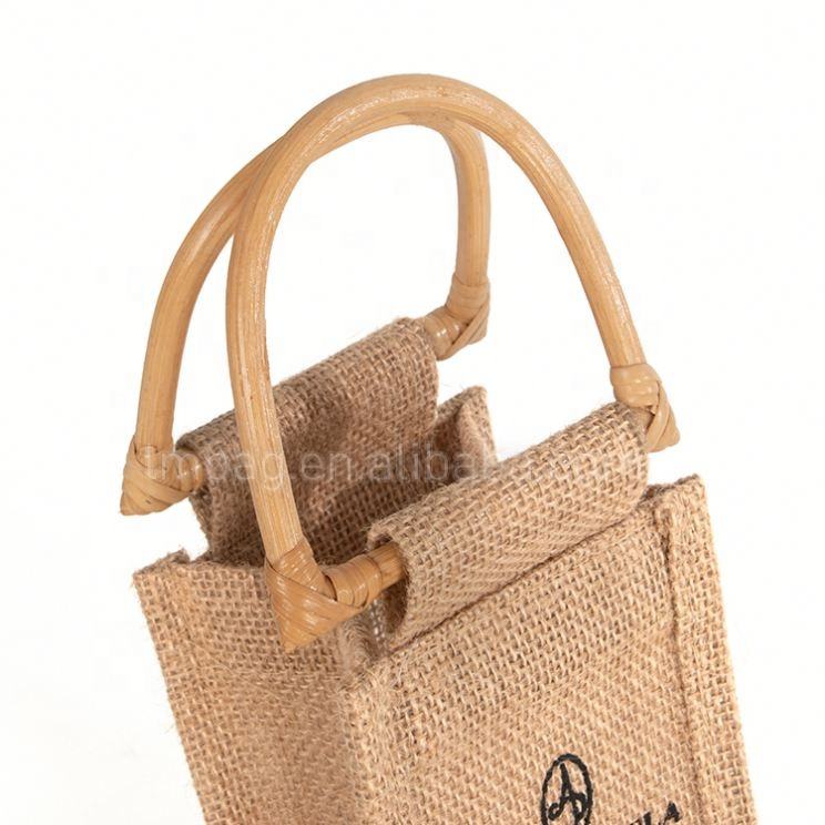 Vente en gros Sac de jute recyclé personnalisé de haute qualité pour le vin avec fenêtre transparente Sac de bouteille de vin durable et écologique