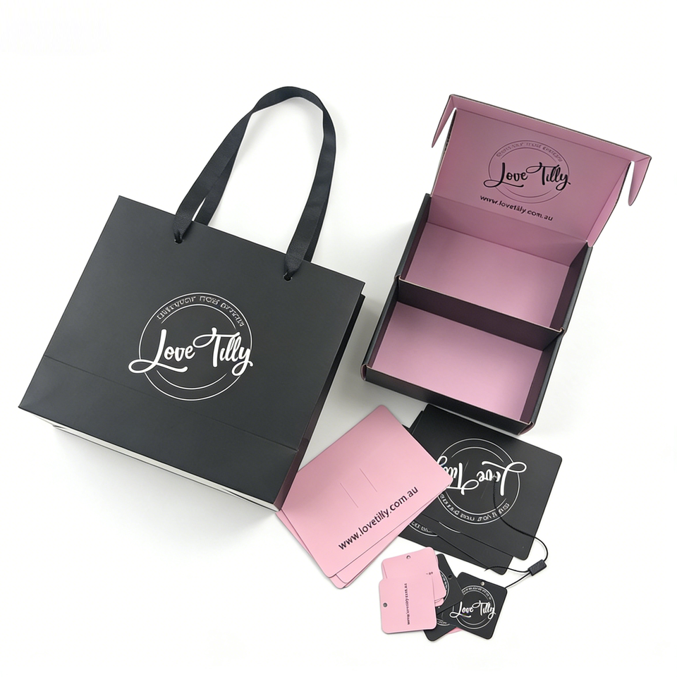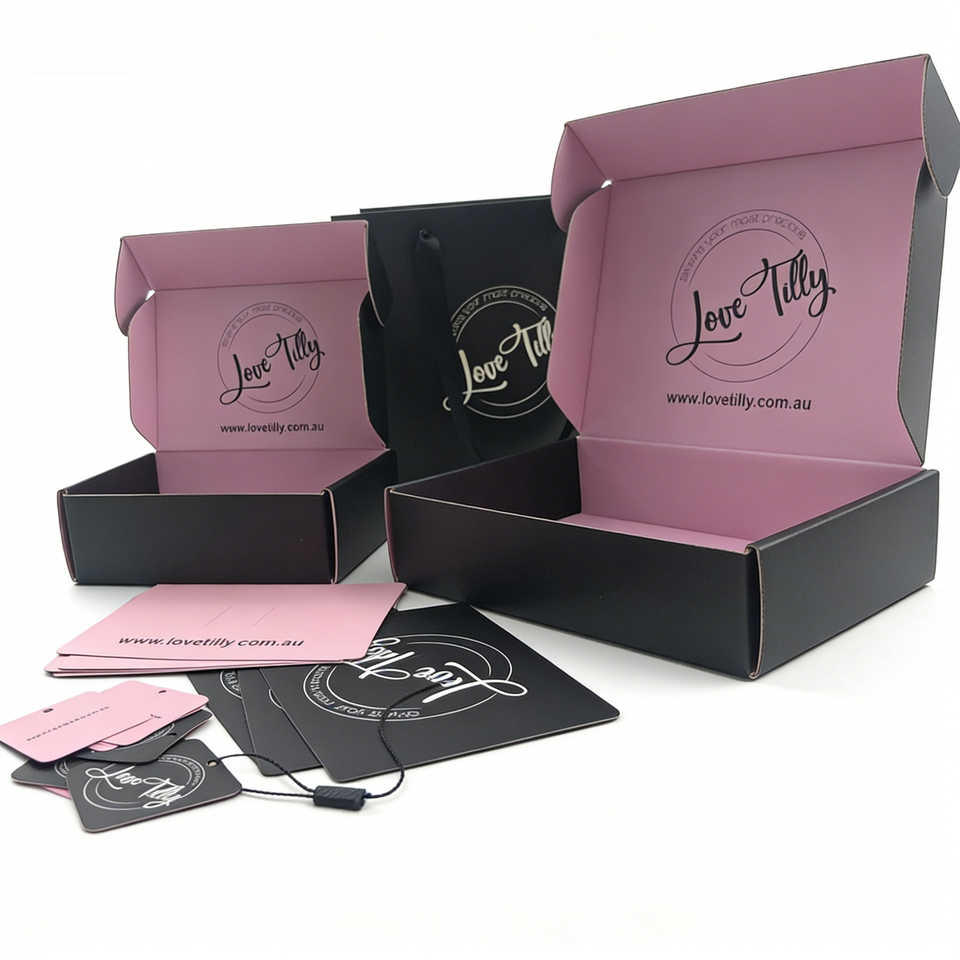 Boîte cosmétique en carton ondulé sur mesure de haute qualité, noire et rose, en matériaux recyclés, personnalisable pour la vente en gros